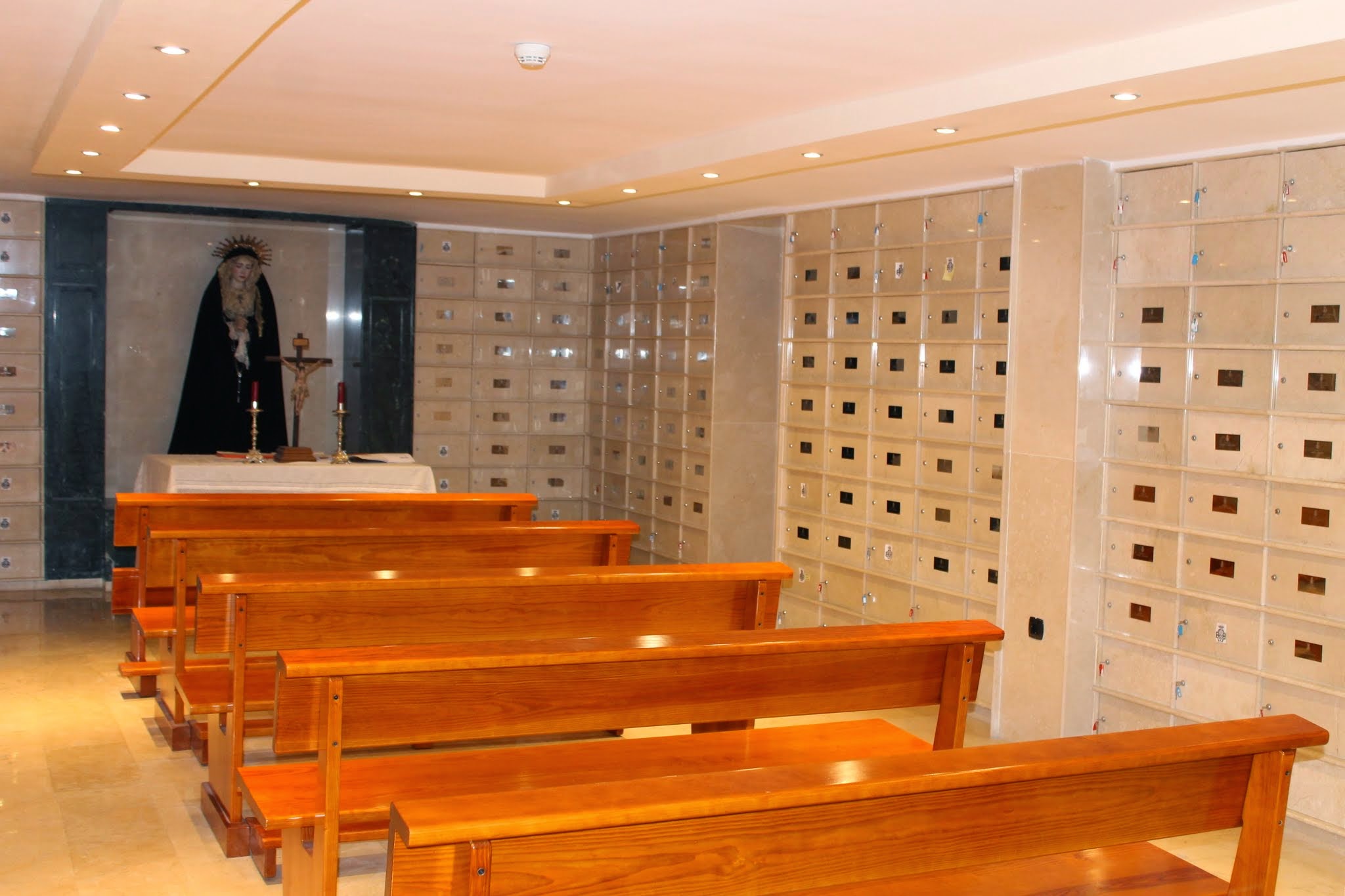 El espacio creado invita al rezo y a la oración por las personas difuntas, dada la iluminación indirecta que da luz a dicho recinto.