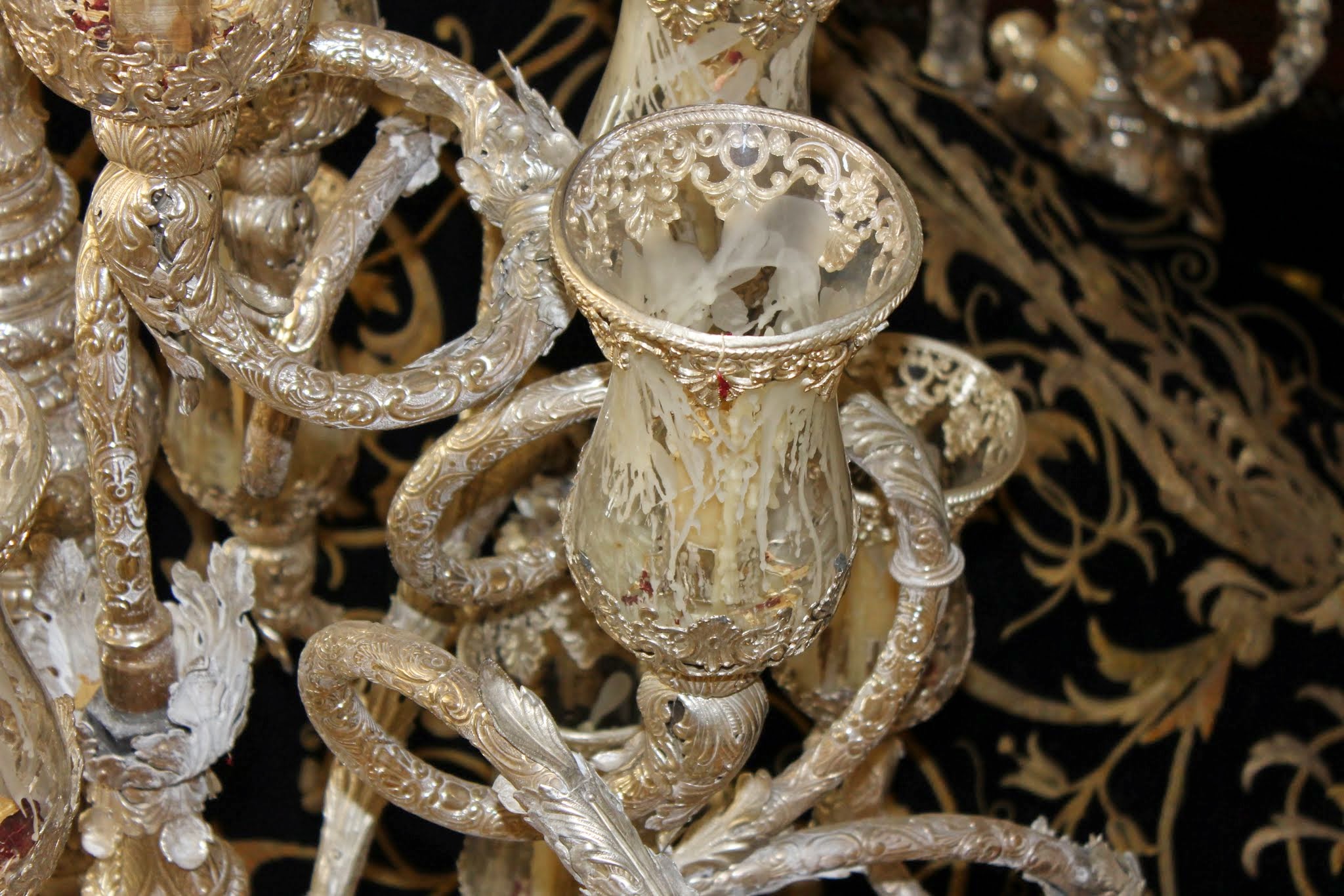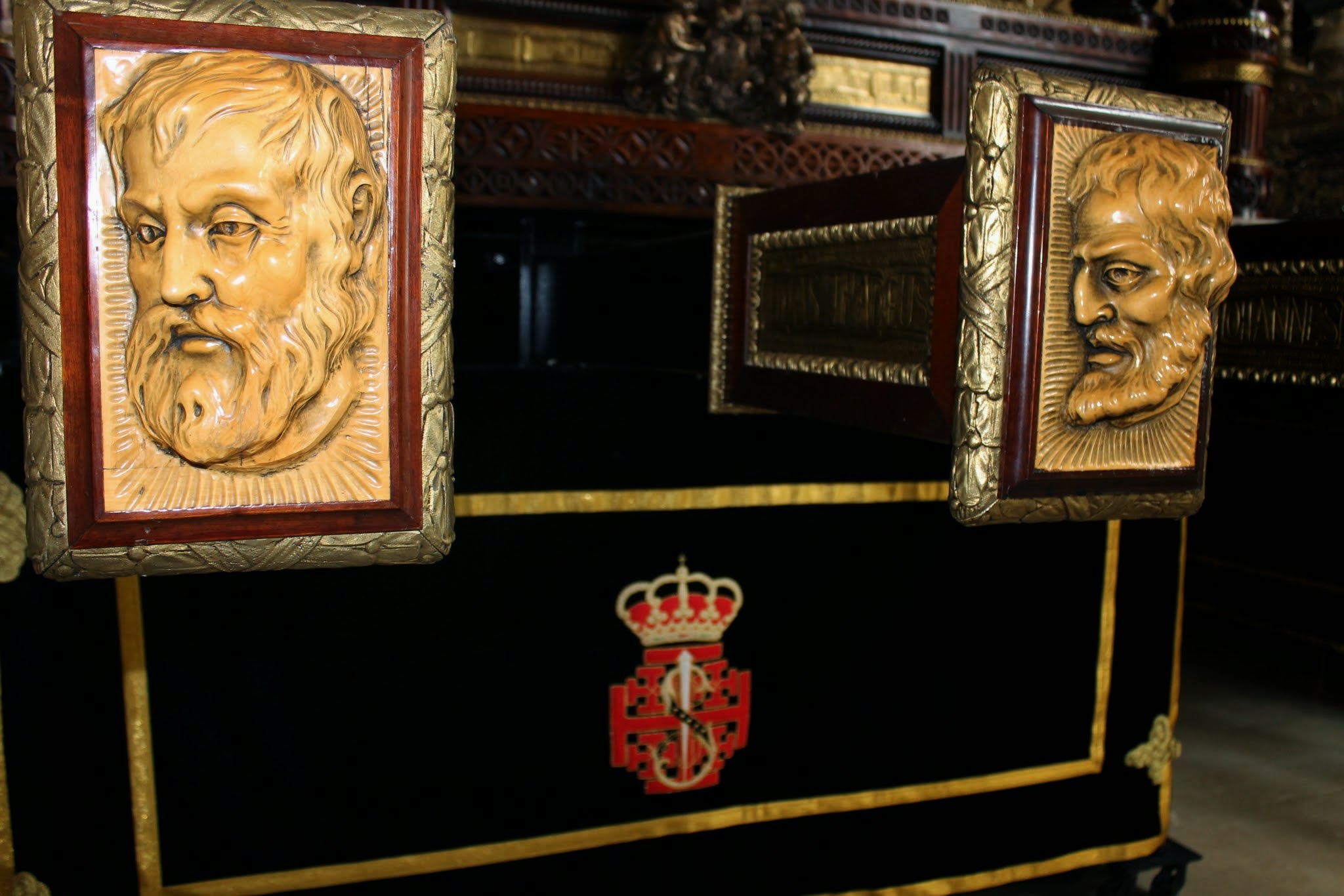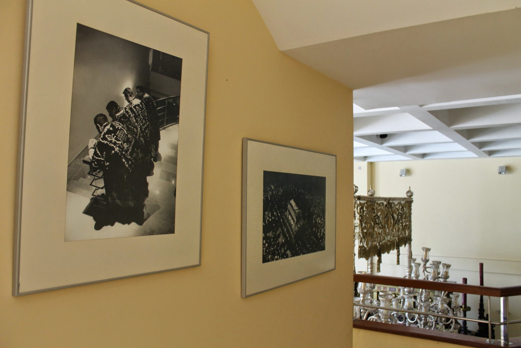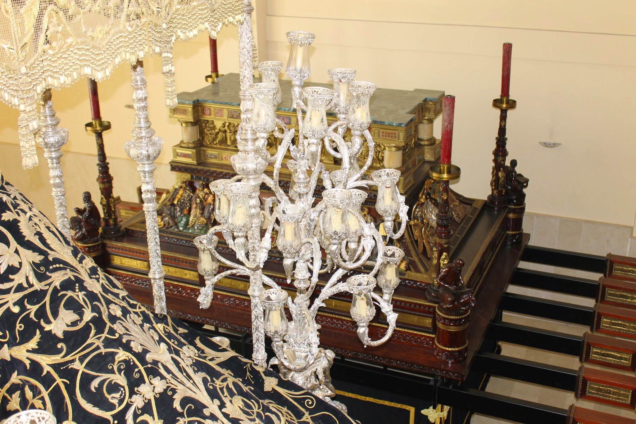Una vez que se ha accedido al vestíbulo de la planta baja del edificio, nos encontramos a la izquierda del mismo, el salón de tronos, donde están dispuestos los majestuosos tronos tanto del Cristo, obra del padre Félix Granda, como el de la Virgen, obra de Seco Velasco.