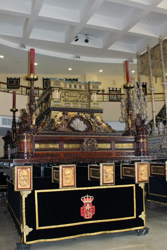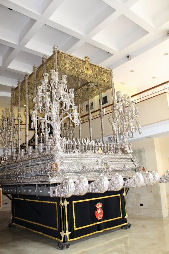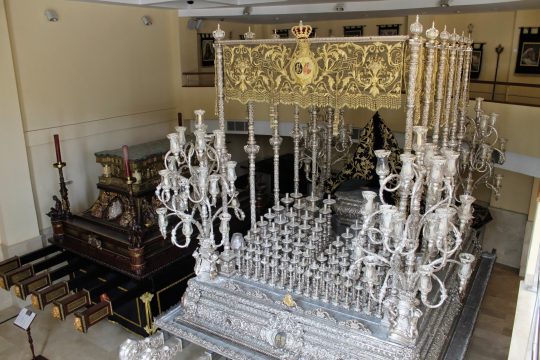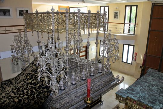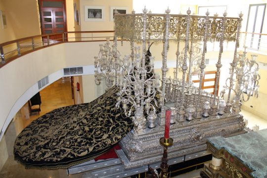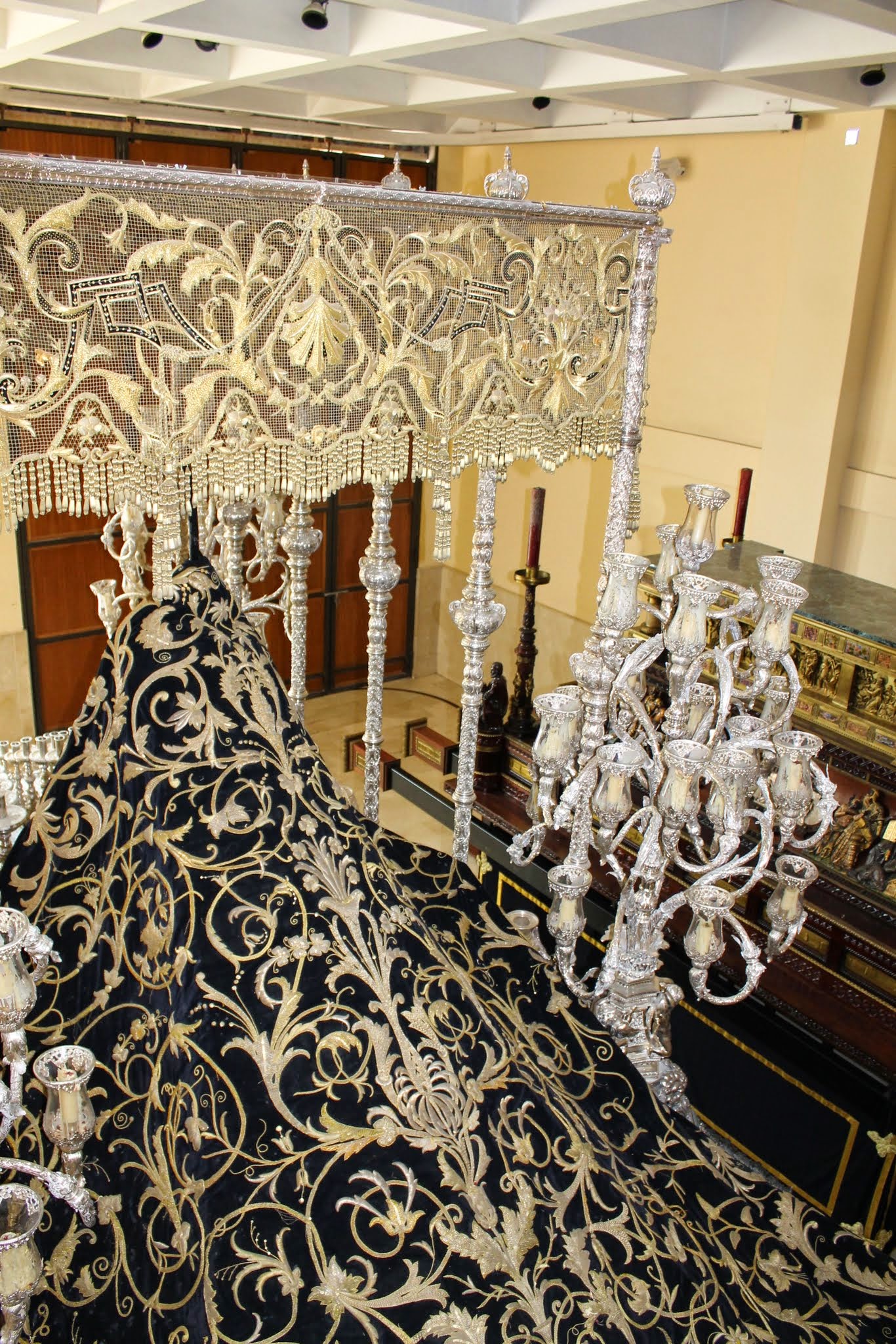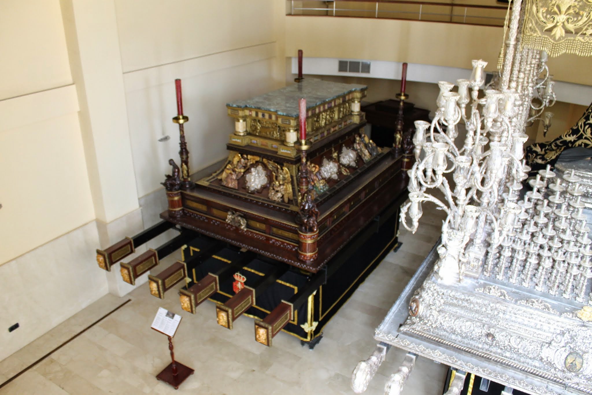 En la planta alta, existe un mirador a una altura superior, donde poder apreciar los detalles del palio de la Virgen y el manto en toda su magnitud, así como una visión de todo el conjunto de los tronos.
