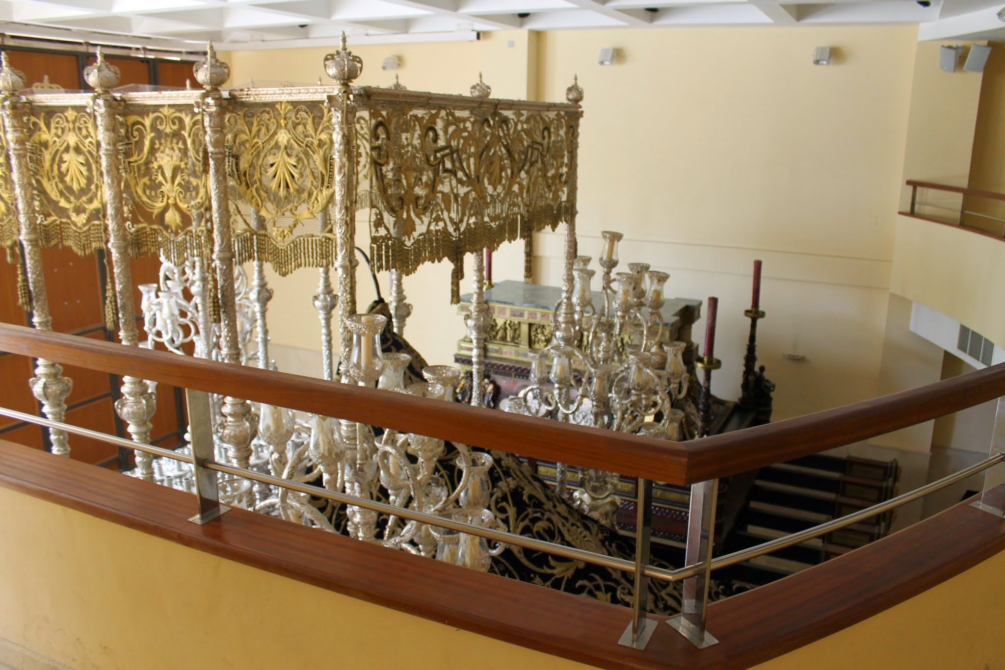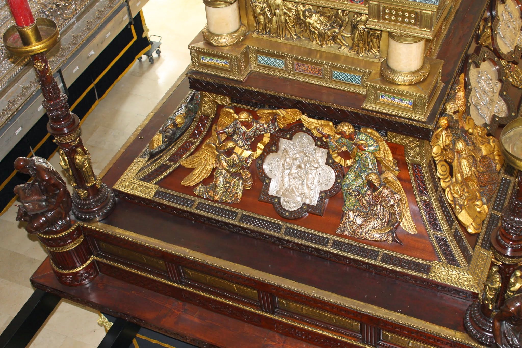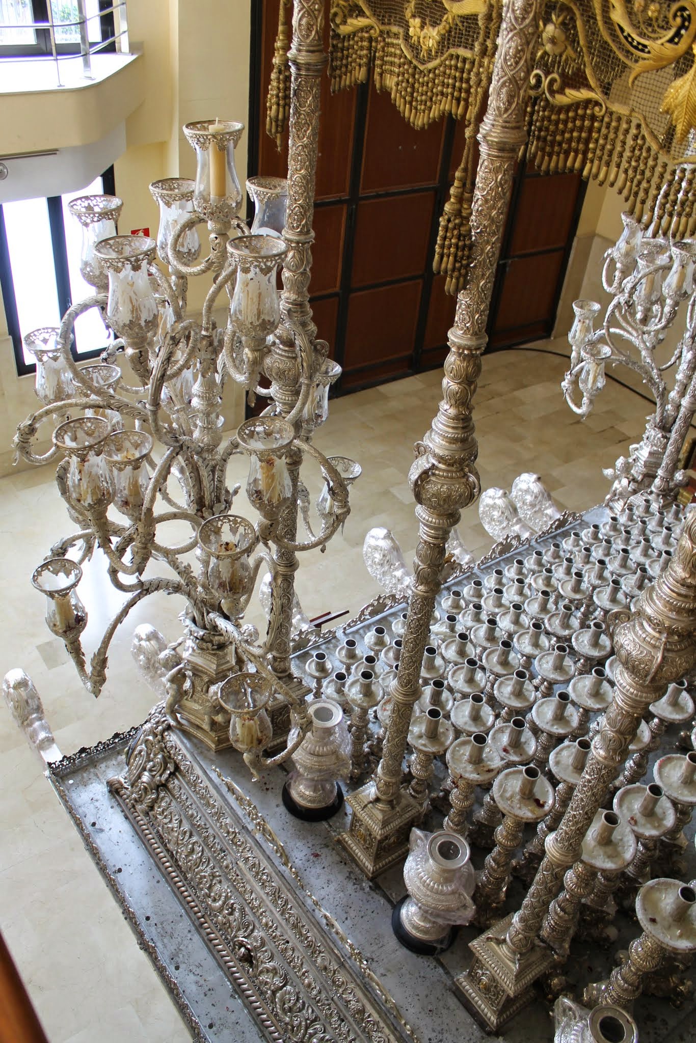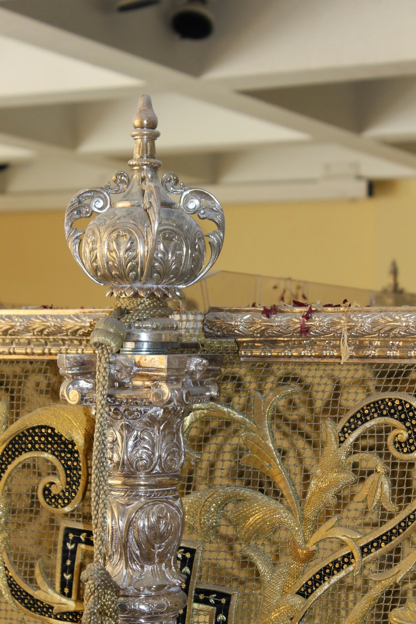 En la planta alta, existe un mirador a una altura superior, donde poder apreciar los detalles del palio de la Virgen y el manto en toda su magnitud, así como una visión de todo el conjunto de los tronos.