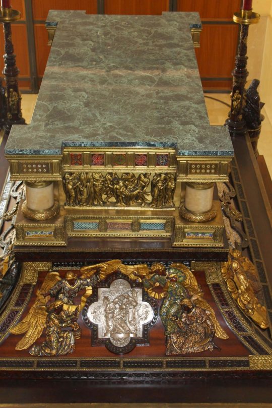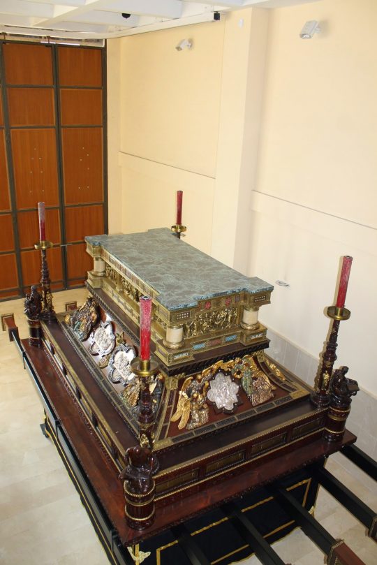 Es un gran espacio con una doble altura, donde se puede deambular alrededor de los tronos para apreciar los detalles y los elementos ornamentales que lo componen.