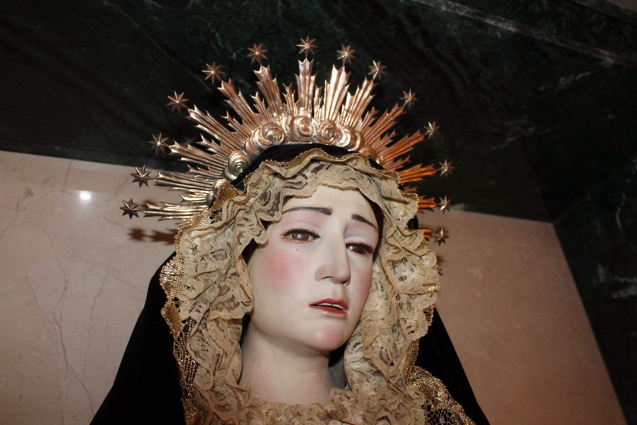 Es una talla muy antigua propiedad de Victoria Guerrero Gil de Reboleños, esposa del que fue Hermano Mayor de la Hermandad José Réding Marín. La tenían en su casa en una urna de cristal y fue donada primeramente al Colegio de la Purísima (Sordomudos) de Málaga, donde estuvo muchos años. Siendo Hermano Mayor Manuel Mérida-Nicolich Rubio, sobrino del matrimonio Réding, decidió rescatarla y trasladarla a la Hermandad. Se depositó en los columbarios, sala que preside actualmente. No se tiene conocimiento del autor ni de la fecha de la talla.
